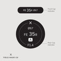 - Each label is sold separately and includes a rear lens cap indicator and a front cap indicator.